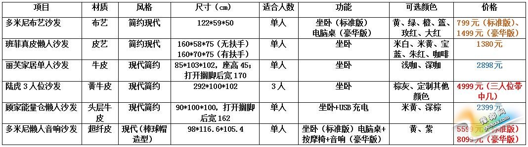 小编总结:由于在材质,功能等方面的不同,今天推荐的这几款懒人沙发价格上也相差很大,最终决定入手哪一款,还要考虑预算问题。所以小编建议,若考虑低端价位,可选择前两款多米尼和班菲的懒人沙发;中等价位2000-3000元左右,有丽芙家居的单人懒人沙发和顾家家居的能量仓懒人沙发可选;预算在5000元以上的话,陆虎的三人位懒人沙发和多米尼懒人音响沙发都值得考虑。