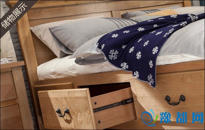这张床的储物功能也很好,北欧风都很喜欢把乱七八糟的杂物藏起来,这款床正好可以满足需求,侧身有3个抽屉,床尾还有2个大抽屉,拉手做的也很有复古的感觉,配上这原木的床身还挺好看的。不过据用户评价,这款床味道有点大,需要散味。