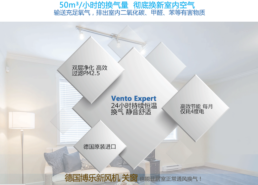最后,作为一篇知识型的导购文章,我们精选了一款值得买的新风净化器——德国博乐Expert A50-1p、BL-Q-FxE120,其核心亮点集中在安装简单、湿度控制以及新风净化上,最高档位下风量分别为50m3/h、120 m3/h,可实现24小时通风换气。因为涉及到空气交换的问题,热交换效率不得不提,博乐芬朵系列均达97%,这是一个比较出色的数据,是比较节能低耗的。