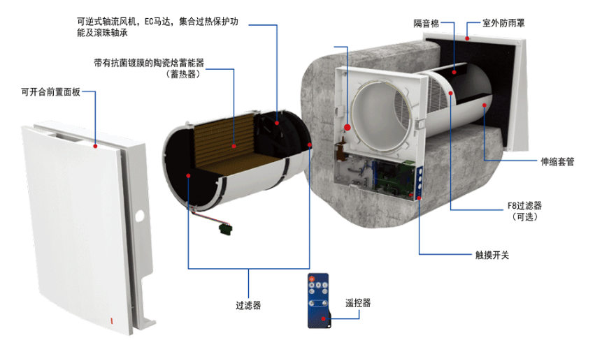 如果重新来诠释新风净化器出现的原因,那么目前中国的空气环境和中国用户的使用需求不得不提,其一是净化器的室内空气循环不能解决室内空气污浊的问题;其二是室外超标的PM2.5导致不能直接向室内引入新风;其三是装修完毕的用户不可能大动干戈来安装整屋新风系统。由此,诞生了“新风+净化”的壁挂式新风净化器。