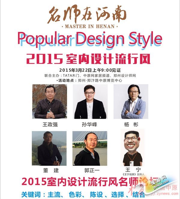 这是一场由中原网、郑州设计师网、TATA木门联合打造的纯公益名师论坛活动,这也是一场声势浩大专门为设计师和消费者准备的饕餮盛宴,这更是一场盛大、高规格、罕见的设计师交流峰会,这还是一场2015室内设计流行趋势的大论战。同时,这又是《豫见·设计论道》系列活动之“名师在河南——2015室内设计流行风”主题活动。