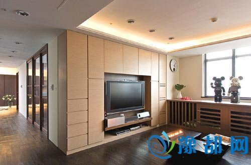 充足的客厅机能为主人享受立体影音创造舒适的环境,在主窗下规划的木作矮柜更是成为主人爱犬的甜蜜小窝,配合刻意使用的超耐磨地板,让两只爱犬可自由在室内活动。