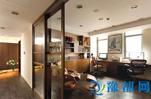 书房用三道精致施工的清玻璃木框拉门做隔断,关上后就是独立不受外在打扰的私密空间,清玻璃的穿透,配合室外光源更加大书房的空间视觉质感。