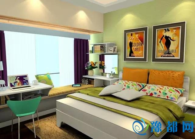 卧室则是以绿色的浅色调为主,让人一进门就能感受到扑面而来的温馨,大衣柜和飘窗利用增加了空间是使用率和储物功能。浪漫不乏稳重,温和富有朝气。
