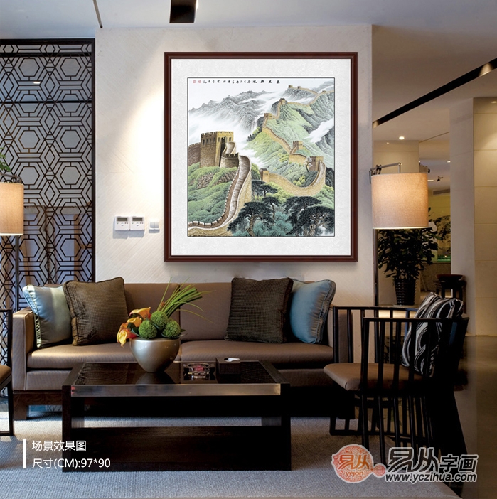 2、客厅选择长城山水画:龙脉相传,家业兴旺