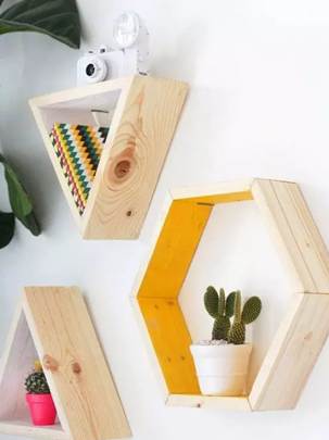 现在几何形状的墙面置物架也是越来越多,在满足收纳功能的同时,装饰性更强。