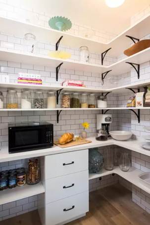不仅能应用在客厅,在厨房的出场率也很高,可用于放置一些锅碗瓢盆或是调味料。