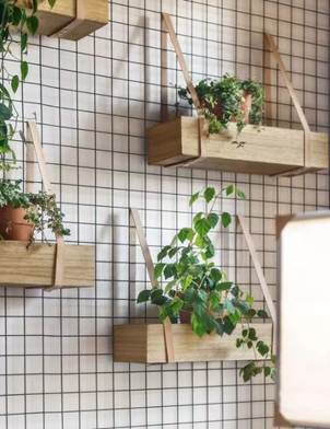最简单的就是这种横的隔板置物架。对墙面空间的利用非常高,而且很百搭哦。文艺范儿~